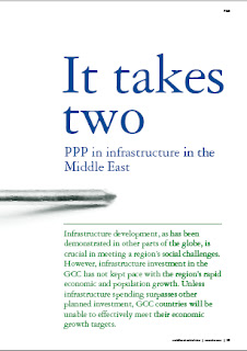 short but interesting report about PPPs in infrastructure in the Middle East.They have name it as: It takes two. PPPs in infrastructure in the Middle East and it has been prepared by Rizwan Shah , managing director, Leader Capital Projects Advisory,